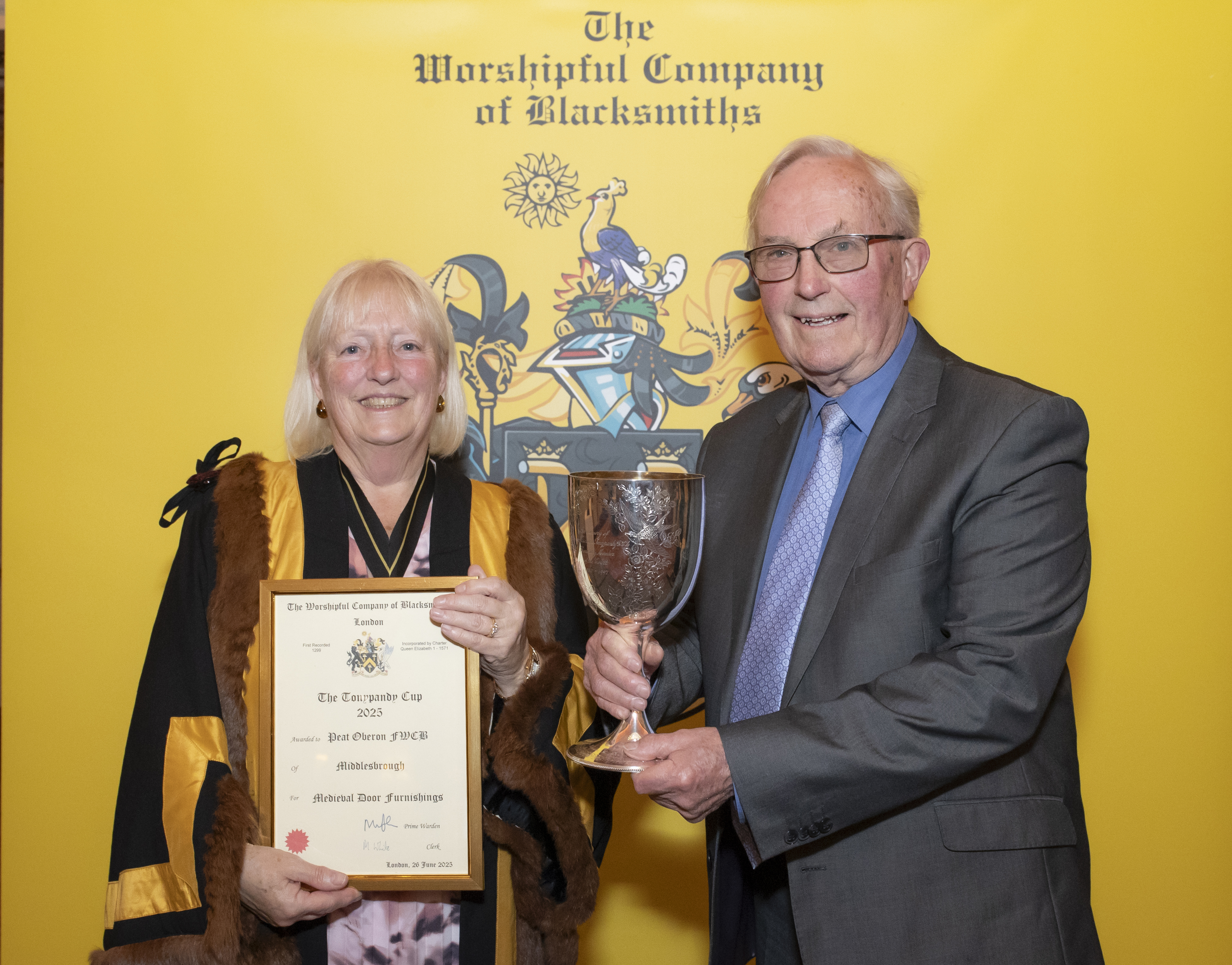 Although this is not awarded every year if submissions do not reach the standard required, this year's award of the Tonypandy Cup was made to Mr Peat Oberon FWCB for his stunning ironwork on the hinges on both sides of a medieval door.
